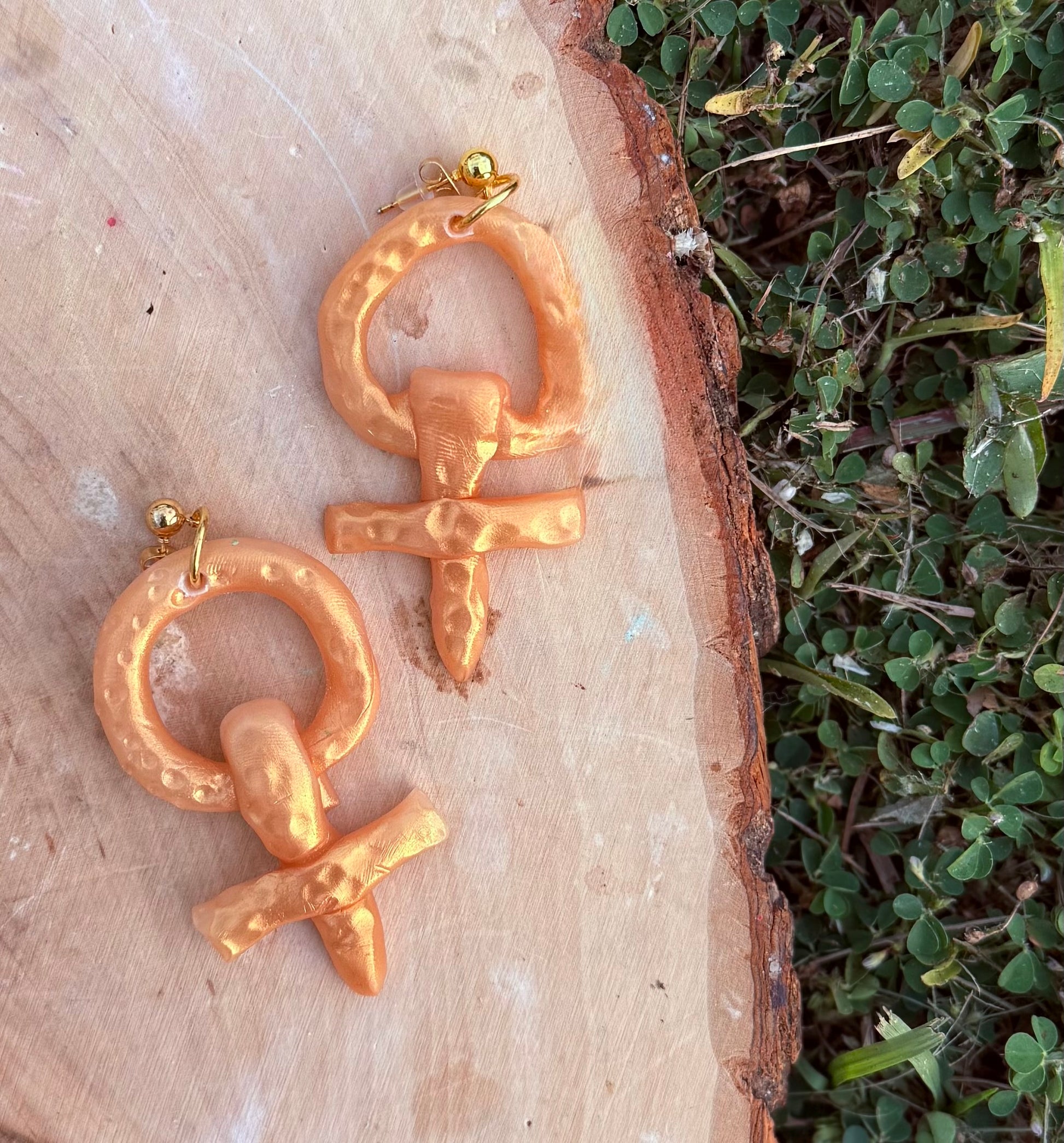 Bold, radiant, and full of purpose — Nia celebrates womanhood in its purest form. Handcrafted in shimmering gold tones, these earrings feature the iconic female symbol, reimagined through art and clay.