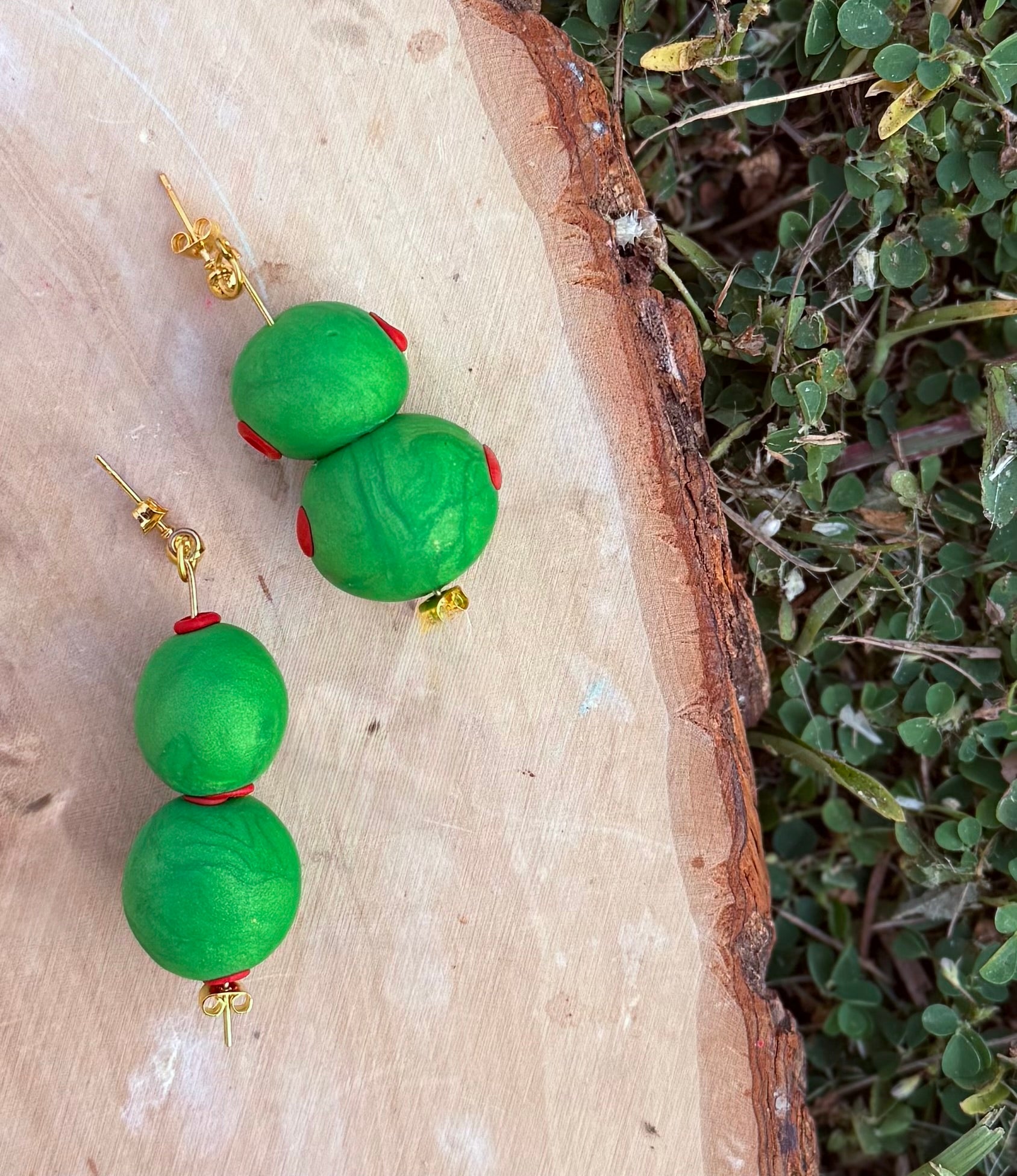 Playful, bold, and a little unexpected — the Sade earrings are handcrafted with marbled green clay beads accented with rich red pops of color. Each piece is inspired by organic shapes and effortless confidence.
